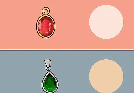 Select gem embellishments. If you have a cool skin tone, look for gemstones in cool tones like red, blue and purple. If you have a warm skin tone, try yellow, green or orange gemstones. You may want to wear your birthstone or the birthstones of loved ones. Examples of gemstones for cool skin tones are ruby, amethyst, sapphire and aquamarine. Examples of gemstones for warm skin tones are citrine, emerald and peridot.