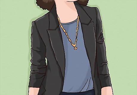 Style a casual outfit. Wear a locket with any casual outfit – such as jeans, a tank top, and a loose cardigan. Don a simple sweater for casual or business casual attire, to give your locket all the attention. Wear a short chain if your top’s neckline is below your collarbone and a long chain if your neckline is at or above your collarbone. For example, pair a locket on a short chain with a scoop-neck tee. Wear your locket on a long chain with a v-neck tee and a cool jacket. The locket dangling on a long chain will make the chain mimic the “v” neckline of the top. Try wearing a locket on a long chain over a sweater or casual dress.