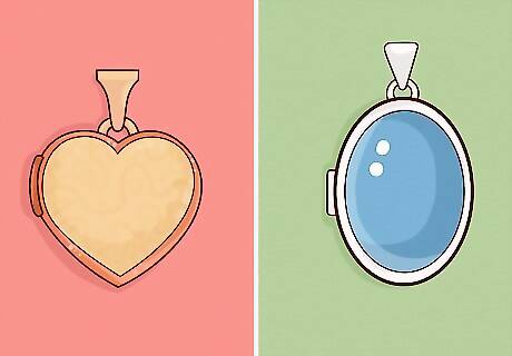 Check out the different shapes available. Some of the available shapes are round, heart-shaped, oval and square. Choose a heart-shaped locket for a romantic vibe, or to give to a partner as a gift. A round or oval locket is versatile and makes a good gift for someone who is not your romantic partner. For example, you may want to give a heart-shaped locket as a gift for an anniversary or Valentine’s Day.