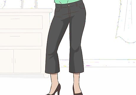 Choose cropped bell bottoms for a fashion-forward look. Bell bottoms typically fall between the knee and ankle when they're cropped. Basically, you're looking for a pair of flared capri pants to create a unique look. Try adding heels to the outfit, as well as a fancy top.