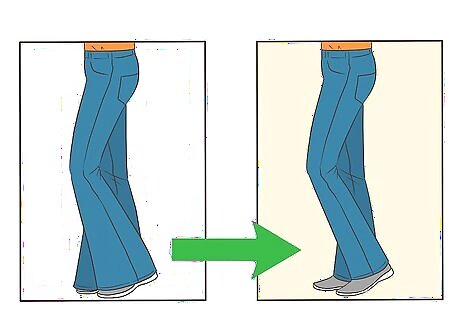 Choose bell bottoms with less flare. The bell bottoms of the 1970s tend to have a wide, dramatic flare, but for a more contemporary look, pick a less dramatic flare. You'll still get the style without looking like a throwback.