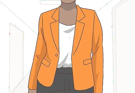 Add a blazer for a business-friendly look. A blazer can upgrade your bell bottom look, particularly if you opt for something besides denim in your bell bottoms. Were a satin shell under your blazer, and you've got a look fit for the office.