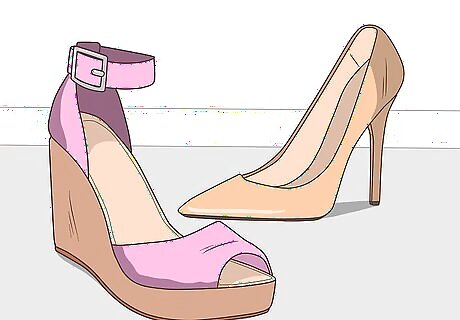 Pick platform shoes for a throwback look. Platform shoes will help you recreate that perfect '70s look. Don't shy away from going bigger, either: think height for a true 1970s look.