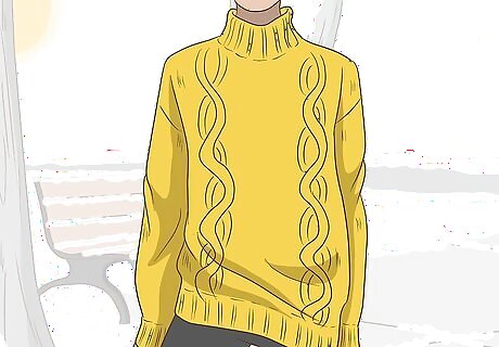 Wear volume on volume for more drama. You may think you need to minimize the volume on top if you're wearing bell bottoms. Actually, wearing some volume on top can add drama to your outfit. For instance, try wearing a shirt dress over bell bottoms for an elongating effect. Another option is a bulky sweater.