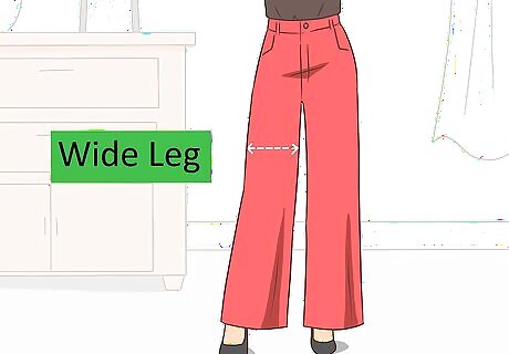 Pick wide leg for a more elegant look. While all bell bottoms flare out at the bottom, some have a wider leg throughout, making the bottom flare less dramatic. Essentially, you're looking for a wide-leg pant that flares slightly at the bottom. This option can elevate your look from a funky throwback to a sophisticated look.