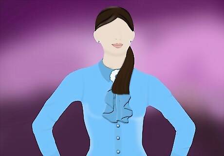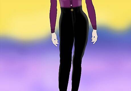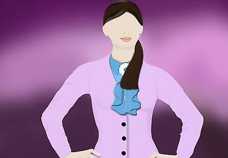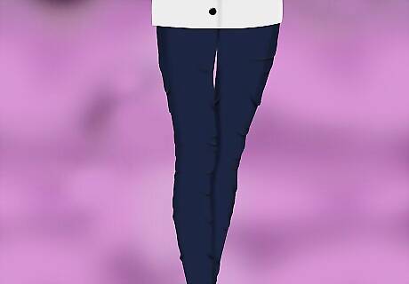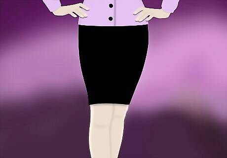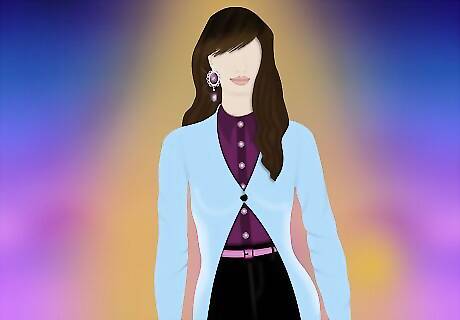 Complete the professional look with flared slacks or a pencil skirt. If you choose a pencil skirt, tuck in the blouse but not the cardigan.