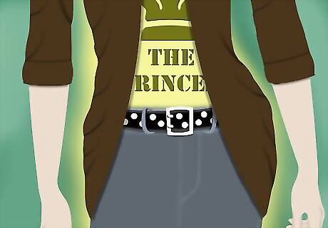 Wear a fitted graphic tee or band tee. This can be a top with any sort of printing, lettering, or design on the front.