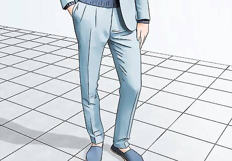 Pair espadrilles with a linen suit for a formal warm-weather look. An unstructured linen two-piece suit matches perfectly with espadrilles. Pale, neutral colors like white, cream, beige, or gray are typically a safe bet for your shoes. Or, pick a pair of espadrilles in a bright hue that contrasts with your suit—such as royal blue or coral—to add a bit of personal flair. For the most polished look, cuff the hems of your linen trousers. A shorter pant leg looks stylish when paired with espadrilles.