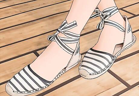 Try a lace-up pair of espadrilles for an elegant fashion statement. Lace-up espadrilles come as both wedges and flats. Flats can be worn with a light swing dress and a hat—a cute outfit that’s also great for a day of exploring. Lace-up wedges add an extra touch of glamor to a flowy dress. Decide whether you want to tie your laces around your ankle or wind them up your calf for a more dramatic look.