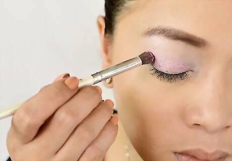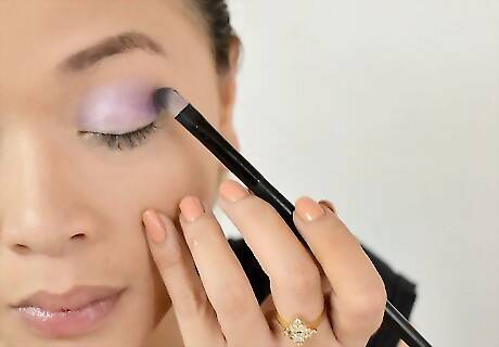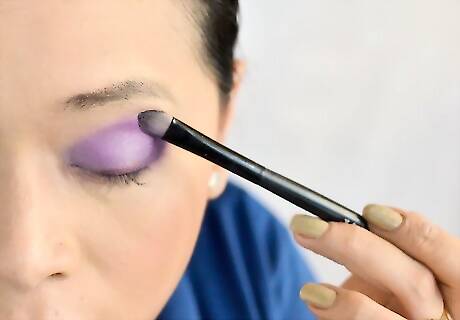Add shimmery purple to lid if desired. It can be a lighter purple or silver or any other shimmery color you want. This helps to add more dimension to the eye.