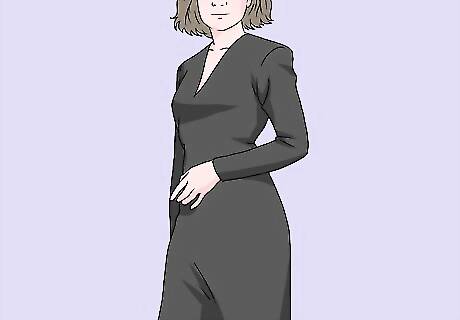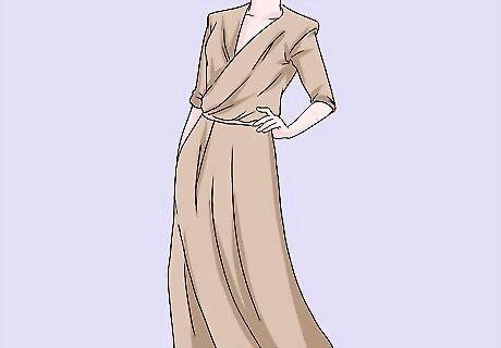 Get ready for a party in a long dress with subtle shoulder pads. Look through your old clothes for a longer, especially formal dress. You can still look super stylish even if your shoulder pads aren’t that obvious. Choose a dress in your favorite color, or play it safe with more neutral tones. For instance, you can slip on a textured, cream- and brown-colored dress with subtle sleeves that rest on your shoulders.