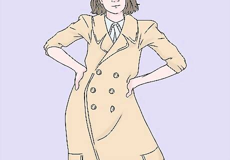 Add a padded overcoat to your ensemble. Search in your wardrobe for any kind of stylish, padded overcoat. Slide a padded peacoat, blazer, or long coat over the rest of your outfit. This garment helps you stay cozy and chic during the colder weather! For instance, you can wear black padded coat over a short dress. To finish off the luck, put on some polka dot tights and high heeled shoes. You can dress up with a professional blouse and slacks with a long, textured and padded coat. Pads can be helpful for you if you have narrow or sloping shoulders. They can balance your frame. If you are narrower on top and bit but curvier on bottom, pads can balance that top out. Pads may not suit those who have broad shoulders.