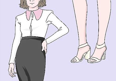 Create a fun cocktail outfit with a padded blouse and high-waisted skirt. Pick out a simple, elegant blouse with padded shoulders that goes with a lot of different garments. Slip into a high-waisted skirt to provide some fashionable division to your outfit. As a finishing touch, slip into a nice pair of heels or other dressy shoes. For example, pair a white, padded blouse with a high-waisted black skirt and open-toed heels. Depending on your workplace, this may be a fun outfit to wear to the office.