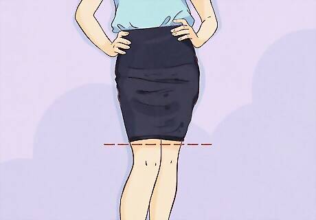 Slim down your legs and thighs by raising or lowering the hemline. Where you choose to raise or lower the hemline depends on which part of your lower half that you want to slim down. For example, if you want to make your calves appear thinner, choose a skirt that falls either above or bellow your calves. If your hemline sits right as the calves, they will look wider.