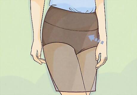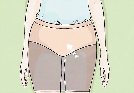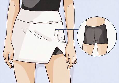 Wear spandex shorts under mini skirts. If you are worried about flashing your underwear while wearing a short skirt, spandex shorts are a great solution. Match the color of the shorts to the skirt, and make sure that they are shorter than the skirt. You can also wear shorts or leggings under longer skirts in the winter to keep warm. Another option would be “boy short” style underwear. They have cuffs that cover the thighs and offer more coverage than regular underwear. If the spandex shorts are too long, fold the legs inwards until they are the right length. You can also try cutting them. Since the material is knitted, it should not fray.