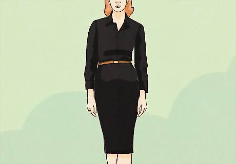 Invest in some shapewear for fitted, high-waisted skirts. This will help smooth down the front of your belly and give you a streamlined silhouette. They are a great idea, even for those who already have a slender figure with a flat stomach because they will help the fabric lay more smoothly. They are great for pencil skirts!
