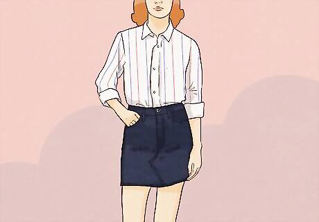 Add a feminine touch with a fit-and-flare skirt. It is similar to an A-line in that it is fitted at the waist and flares out, except that it has much more volume to it. It is perfect for twirling in and goes great with belts and button-down blouses. It is typically around knee-length, but it can be shorter or longer as well. For a chic look, try a black fit-and-flare skirt with a fitted shirt, pumps, and statement jewelry. For something more casual, pair the skirt with a button-up blouse, preferably denim.