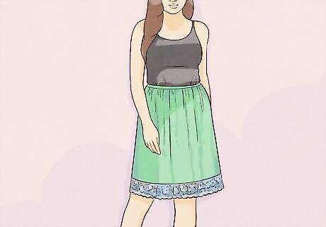 Wear a slip if the material is very sheer or thin. This includes skirts made from tulle, chiffon, lace, and thin cotton. If you can see your legs through the skirt, you should wear a slip under it. Match the slip to your skin color or to the skirt color. If you are wearing a lace skirt, consider pairing it with a slip in a contrasting color for a more unique look. You can also wear slips under clingy skirts to reduce static.