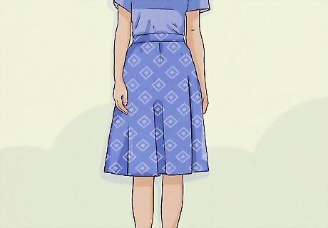 Try an A-line skirt if you can't seem to find anything that fits. A-line skirts tend to look good on most people, so you can't go wrong with this classic shape. It is fitted at the waist, then flares out, ending just below the knees. If you want to be bold and daring, pair a patterned A-line skirt with top that has thick, bold stripes. Make sure that the skirt and shirt have at least one matching color. If you want something more subtle, pair 2 different solid colors together. You can also pair a patterned skirt with a solid-colored shirt.