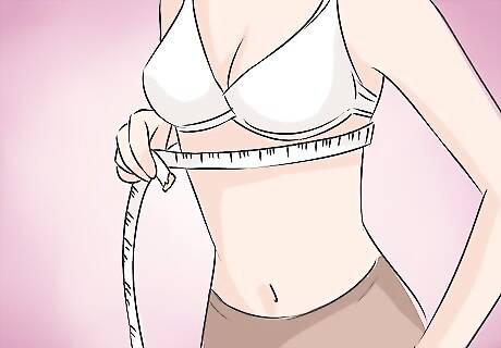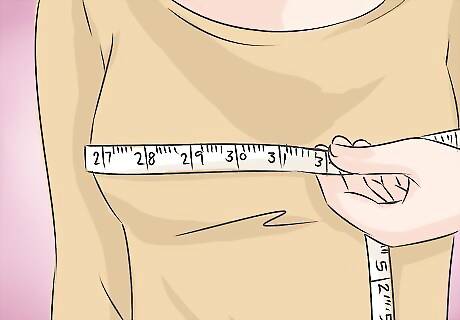 Use your tape measure to measure around the widest part of your chest. Usually, the tape measure should cross over your nipples. Keep the tape measure parallel to the floor. Do not allow it to become slack but do not keep it too tight, either. This number is your bust size.