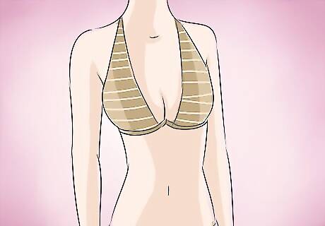 Try on a halter bra for a halter top. The straps on a halter bra come in closer around your neck, rather than sitting further out along your shoulder. As a result, the straps remain hidden beneath the fabric of your top. Wear racerback bras for racerback tops. Like the halter bra, the racerback bra has straps that mimic the shape of the top that shares its name.