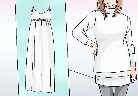 Pair a simple, white slip with an oversized white sweater, and boots or ballet flats. For the sweater, try a softer material, such as cashmere. This will help complete that soft, girlish look. For the shoes, try something that is either black or nude. This is perfect for the winter, but can be suitable for a cold fall day.