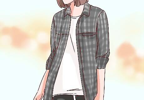 For a casual look, wear a black-and-white plaid shirt over a white T-shirt. Complete the look with a pair of blue jeans and black canvas sneakers. For an alternate, but similar style, try white skinny jeans with blue canvas loafers, a grey shirt, and a blue, plaid, button-up shirt.