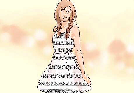 Try getting white fabrics with a simple, colored print. If you are hesitant about wearing all white, you could always try something with a bold print. For example, you could try a white dress with a bold, black tribal or chevron print. Your outfit will still be predominantly white, but the pattern will add a touch of color.