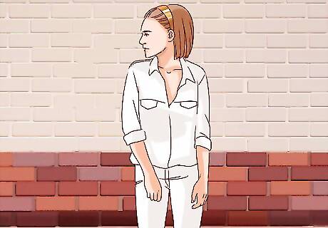 Wear a slip or camisole under transparent whites. Even if you are wearing skin-toned underwear and bras, transparent whites may reveal more than you'd like to show. When shopping, stick your hand under the fabric to determine whether or not you will need a slip or camisole. If possible, try to take the outfit over to a window, where you can see the transparency in daylight.