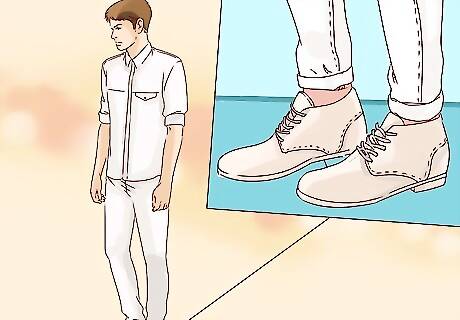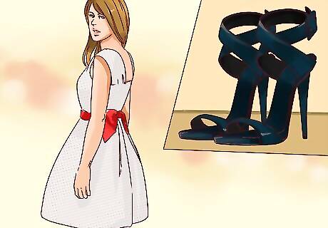 Bring in another color to your all-white outfit when wearing colored shoes. This will keep your shoes from becoming the focus of your outfit. For example, if you are wearing a white dress and black shoes, try adding a black belt.