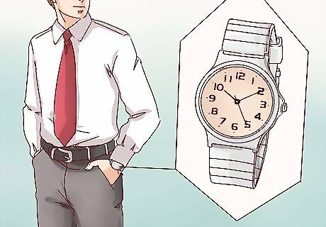 Pair white with metallic accessories for a subtle variation. Try a watch with a silver wristband or a gold clutch purse. Silver colors will make your ensemble appear more chic, sleek, and modern, while gold or bronze will give it a warmer look.