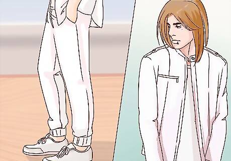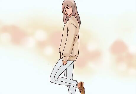Get cozy in fall or winter with white pants, an oversized sweater, and loafers. Go for a light, neutral color for the sweater, such as beige, tan, or camel. This is a perfect, cozy look for any chilly fall or winter day.