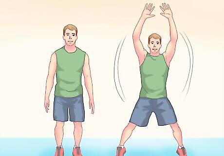 Stay moving between lifting sets. You can get in a cardio workout by doing jumping jacks or jogging or doing some other cardio exercise between sets while lifting weights (known as 'supersetting'). This will keep your heart rate elevated while lifting and can be a good way to combine strength and cardio training. If you already lift weights but hate cardio, this is one of the easiest ways to make yourself start getting that heart rate up. If your lifting routine typically involves long rests between sets, you will notice yourself becoming fatigued more quickly if you keep moving during these lifting breaks. Don't be discouraged if your number of reps or maximum weight drops while doing this. Because your cardio bouts will probably take less time than your idle rest periods, this is also a good way to speed up your workouts to save time.