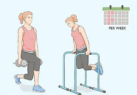 Include 1-2 days of strength training. In addition to cardiovascular exercises, it's also important to stay regular with strength training. Most professionals recommend to do these types of exercises about 1 or 2 times per week. This minimum guideline helps provide additional health benefits to the ones provided by cardio. Strength training specifically helps strengthen bones, builds muscle mass and supports your metabolism. Things like yoga, calisthenics and free weights are great options to include if you're looking for a quieter routine.