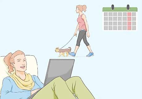 Take active rest days. Rest days are also important to your physical activity routine. They not only help your body recover and rest, but may be a great way to give your roommates or neighbors some quiet time. Studies have shown that its actually during rest that your muscles grow in size and strength. Without rest days you won't make very much progress with your exercise routine. Most fitness professionals recommend at least one, maybe two rest days per week. You should still be active - maybe going for a walk instead of a run - but need to avoid more high impact or higher intensity workouts. Try to schedule rest days when your roommates or neighbors are around or home more often. For example, if people sleep in later on Sundays and want to enjoy a quieter day, schedule a rest day for Sunday so it coincides with other's schedules.