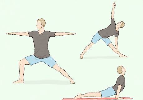 Try yoga for strength and flexibility training. If you want to stick to a regular strength training routine, but are looking for a quieter method, consider doing yoga. This is a naturally quieter form of exercise but can be great for strength. One of the reasons yoga is more quiet is that there are no explosive movements, no plyometric jumping or use of any free weights or weight machines. In addition, yoga requires the use of a mat (or at least a carpeted floor) which also absorbs the shock and sound from exercise. Yoga helps strengthen, lengthen and tone muscles. It requires you to control and focus on your breathing and uses very slow and controlled movements. All reasons why this is a more quiet form of exercise.