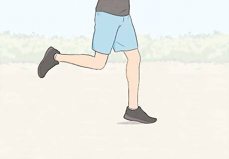 Run and walk more quietly. Another time you might find yourself making a lot of noise is when you're jogging or running on a treadmill. The way your foot falls may sound like a very loud splatting or thudding noise. Proper running form is naturally quieter and safer. When you run more naturally, fitness professionals say your stride and footsteps are much more quiet. In addition, you reduce your risk of overuse injuries caused by excessive impact. Many runners have been told to run "heel to toe." However, now fitness and running coaches are suggesting that you hit the ground midfoot instead of at the heel. The next time you're out for a jog or run, focus on where your foot naturally falls and aim to hit the ground midfoot and roll forward to your toe to push off again. Also make sure that your foot falls underneath your hip, not far out in front of you. This helps over striding (which can lead to injury) which makes running louder.