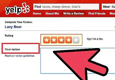 Read through some of the other reviews of the business on its business listing on Yelp. Take mental notes of the star ratings and the equivalence of others' ideas in their reviews.