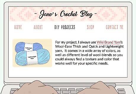 Include affiliate links in your posts to products you recommend. Affiliate linking is when you include links to products your readers can buy, such as yarn on Amazon or another retail site. Each time a blog visitor clicks on one of these links and makes a purchase, you may earn a percentage of what they spent. Think of it as a commission for helping to advertise and sell their product. Look into affiliate programs through Amazon and other retail sites where you purchase your crochet supplies.