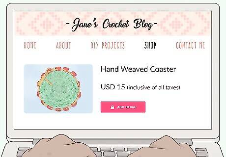 Set up a shop where people can buy your patterns and other items. Although it’s usually not possible to earn a full-time income by selling products alone, it is a good way to boost your income and promote your blog. Etsy and Ravelry are good options for selling patterns. You can also sell finished crochet items on sites like Etsy. Set up a shop and list items that you make. Don’t forget to link to your Etsy or Ravelry shop on your blog and talk about it in any videos you make. Include a link to your shop at the top of your blog and place the link to your Etsy shop in the description of your videos.