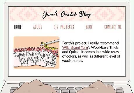 Write blog posts to share your projects and try out new ones. Once you have your blog up and running, start writing! Write about your favorite or signature crochet projects, or look to see what other bloggers have written about for inspiration. For example, if you have noticed that a crochet blog you follow has gotten lots of reader feedback from their description of how to crochet a messy bun beanie, then you might include your own pattern for this project on your site. Aim to post on your blog at least once per week. Choose what day or days you will share posts on your blog. Make sure that everything you post on your blog is your own original content. It’s okay to look at other blogs for inspiration, but write the instructions in your own words. Never copy what other people have written verbatim.
