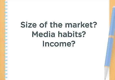 Assess what information you don’t know. Market research is all about finding information that will help you effectively market your business. Sit down and write out what you don’t know about your potential customer base. Consider the following: Size of your market. For example, you might want to start a business that caters to children. Do you know how many people within a 20-mile radius have children? These people are most likely your potential customers. Media habits. Do you know what publications or media your customers use? If you want to use paid promotions, then you’ll need this information. Income. Do you know how much income your target consumers have? This information will impact how much you can charge and whether your business will be profitable. EXPERT TIP Helena Ronis Helena Ronis Business Advisor Helena Ronis is Co-founder and CEO of AllFactors, a unified web analytics software to drive company's marketing and business growth. She has worked in product and marketing in the tech industry for over 8 years, and studied Digital Marketing & Analytics at the MIT Sloan School of Management Executive Program. Helena Ronis Helena Ronis Business Advisor Helena Ronis, startup founder and CEO, tells us: "There are really two market analyses to do — the general analysis of the money in the market and then the product analysis: You want to ask does this product exist, and if it does, how well does it solve the problem? Is there room for something better?"