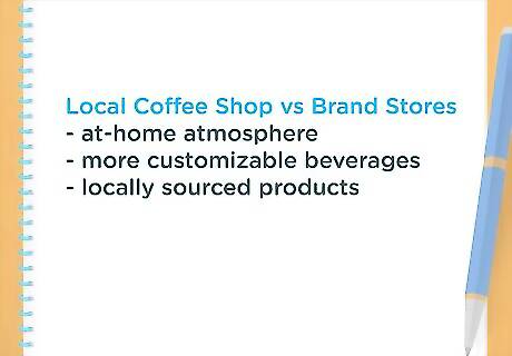 Provide a competitive analysis. Identify your competitors’ market share and then discuss their strengths and weaknesses. Also explain how you will take advantage of current competitor weaknesses. Usually, you will offer a service that your competitors don’t, but you might also provide a different experience. For example, a children’s boutique might find that there is no one within driving distance who offers original children’s clothing. Instead, the only competitors might be box stores who offer popular brands. A coffee shop might compete by offering a comfortable, at-home atmosphere that brand stores cannot create.