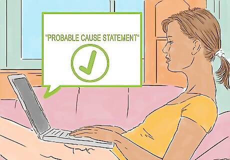 Type up a statement. If no form exists, then you will need to type up a probable cause statement. You can begin by opening a word processing document. At the top of the document, center the words “Probable Cause Statement” in all caps. Make the words bold.