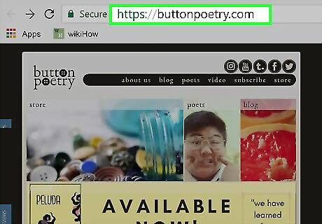 Enter a Button Poetry contest. Button Poetry runs contests to help poets share their work and build an audience. You can usually enter their contests by submitting your work via the contest link. To find out about Button Poetry contests, follow them online via their website, YouTube Channel, or social media. For more information, visit their website at https://buttonpoetry.com/.
