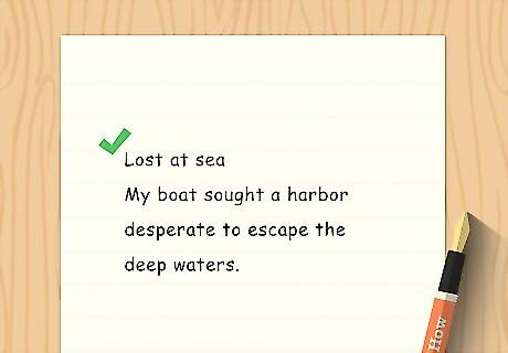 Incorporate personification. Personification gives human attributes to non-human animals or objects, usually to illustrate a point. It allows you to incorporate more imagery. For example, you could speak about a boat as if it had feelings: "Lost at sea/My boat sought a harbor/desperate to escape the deep waters."