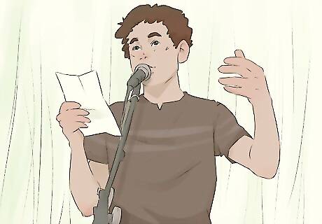 Sign up for an open mic night or poetry slam. When your ready, look for a local event where you can perform your poem. Coffee shops, bars, and performance spaces are great places to look. Take a few friends with you so that you know you’ll have the support of the crowd!