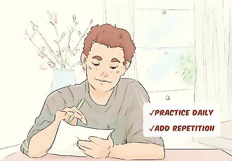 Memorize your poem if you want to focus on the performance. In most cases, memorization is optional. However, it can improve your performance because you won’t have to keep glancing down at the poem. Additionally, it will free up your hands to allow for more gesturing. Repetition can help you memorize the poem. Practicing daily helps, as well.