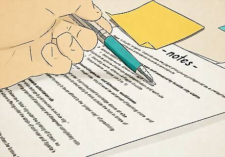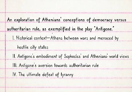 Jot down all the valuable info you’ve memorized on a separate sheet of paper. Don’t make these notes exhaustive. Instead, just jot down basic tidbits and facts for easy reference as you go through your essay. Do your memory dump at the very beginning, so you can spend more time writing and less time recalling certain facts. A memory dump might be especially helpful for a subject with a lot of specific names and dates, like history.