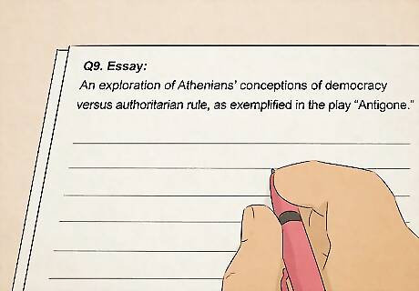 Ask your teacher for a copy of an old exam. How are the questions in this test constructed, and what do they focus on? While you’ll have different prompts on your own test, old exams can shed some light on how your teacher tends to structure their essay questions. The more prepared you are, the quicker you’ll be able to dive into your test. For example, your teacher might write a lot of test questions about comparing and contrasting points. Or, your teacher might center their test questions around persuasive arguments.